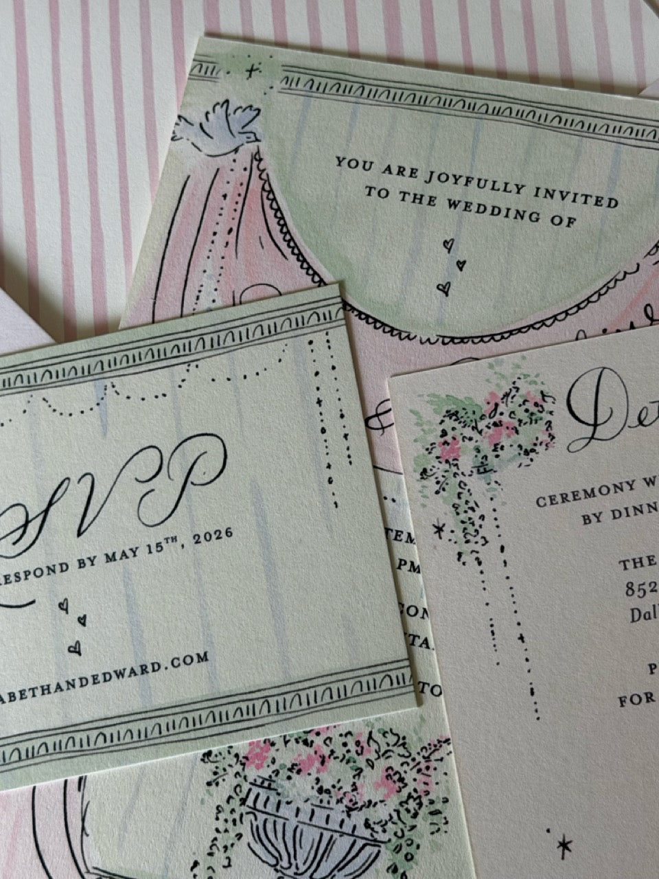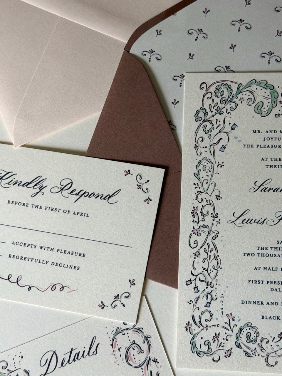 Couldn’t be happier with these gorgeous wedding invitations! The quality, details and craftsmanship were so beautifully executed, I actually gasped when I opened the printed proofs. Sarah and Annie made the entire process seamless with their quick, friendly communication, and were so accommodating helping me with customizations for the invitation suite of my dreams from their gorgeous semi-custom options. Can't recommend enough!